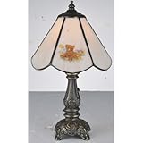 Meyda Tiffany 107809 One Light Teddy Bear Mini Table Lamp, Mahogany Bronze Finish with Light Peach Glass : Bear Lamp